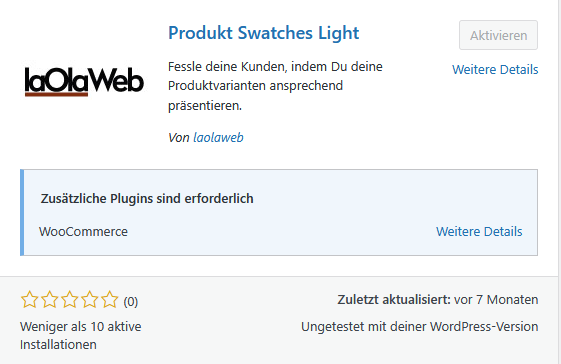 - Suche dort nach „Produkt Swatches Light“.